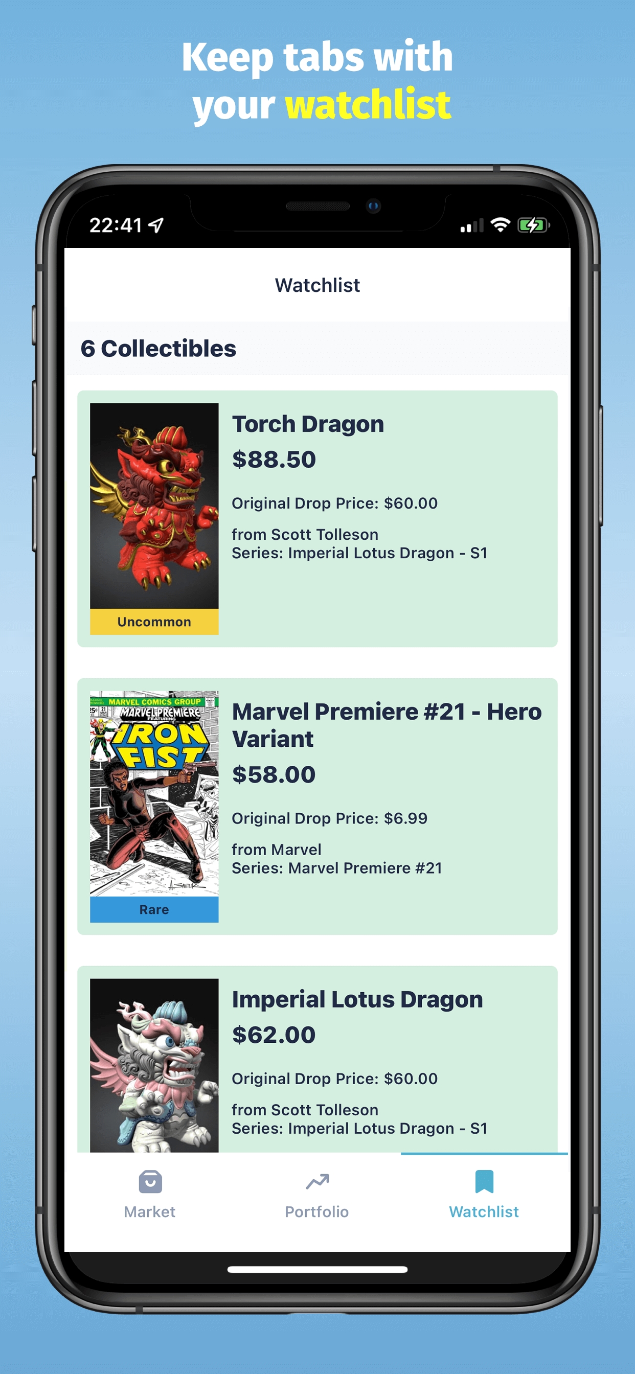 Find your collectibles and comics and add them to your portfolio to track their overall value.